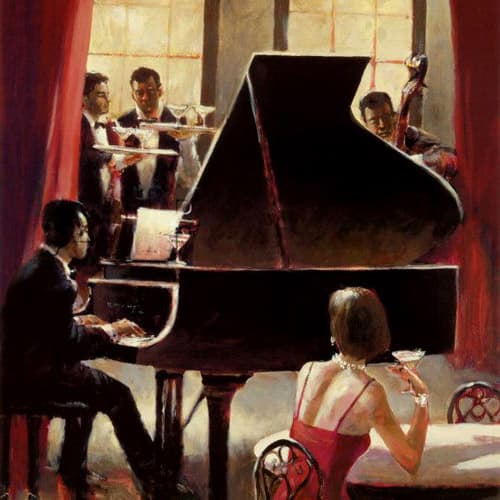 Here's a really nice laid-back piano jazz piece I put together a long time ago in a sort-of Django style. This one is easygoing, but it's also a bit adventurous with some interesting chord twists and meandering solos. Try it with a dry Manhattan!